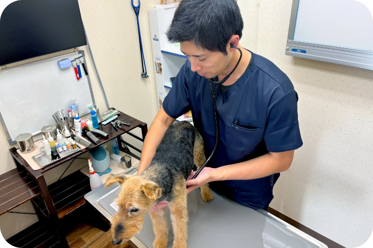 動物の状態を丁寧に診察し、あらゆる可能性を視野に最適な治療を一緒に考えます。
